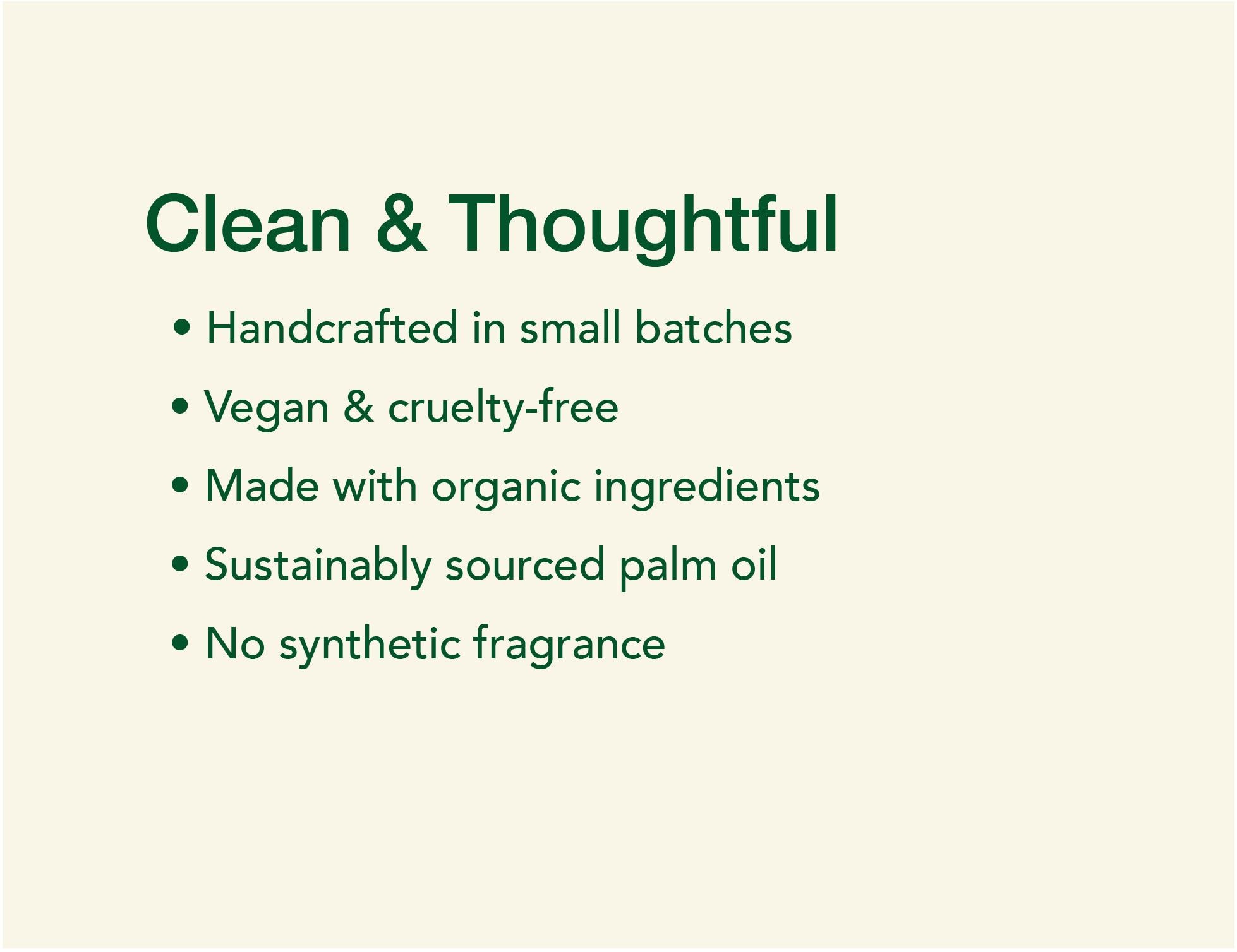 Our soaps are handcrafted from scratch in small batches, using the cold process method and cured for two months to ensure premium quality. We exclusively use natural, organic ingredients and the finest pure essential oils (no synthetic fragrance oils).