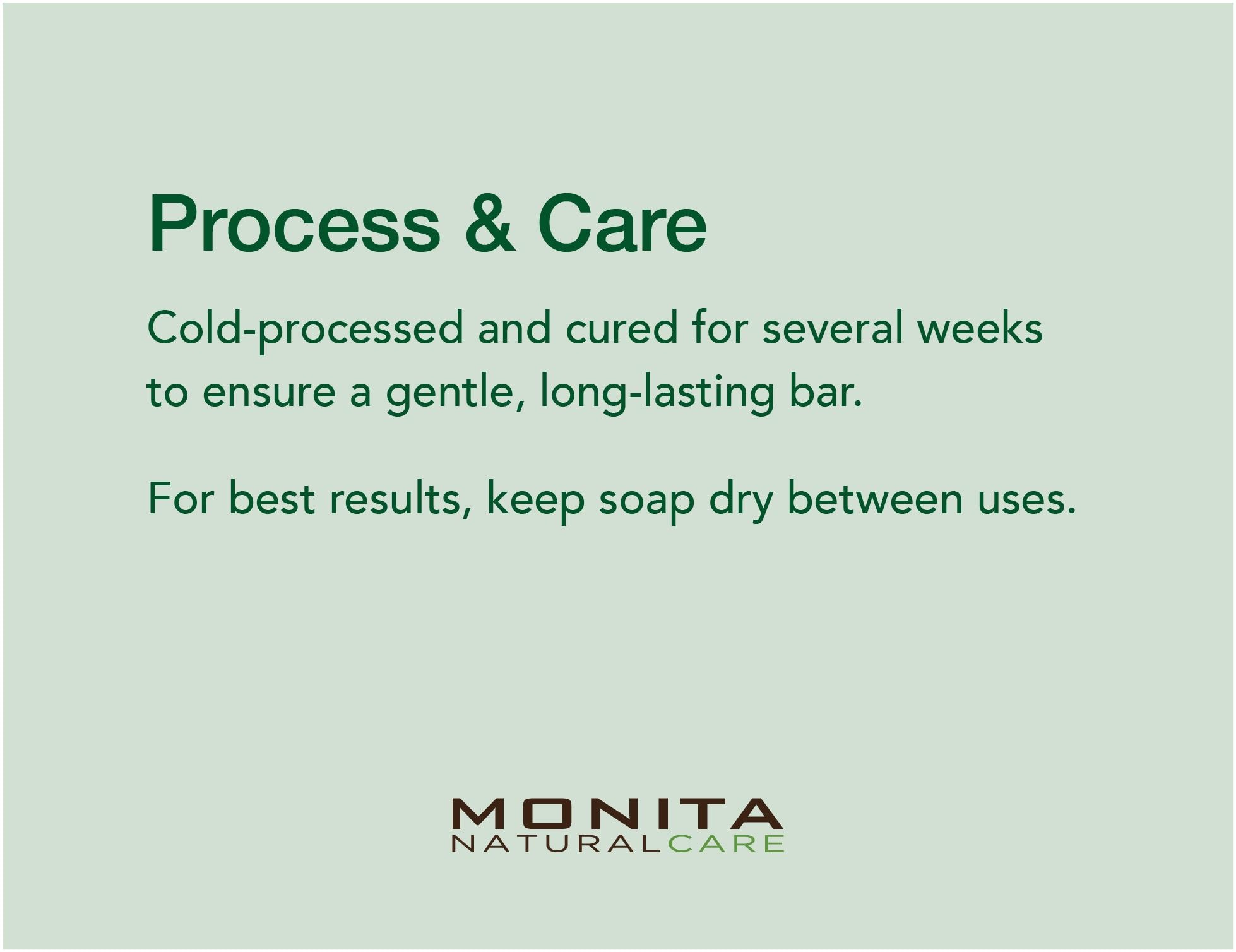 Tip for Longevity: To make your handcrafted soap last longer, use a draining soap dish or soap saver, and always keep it dry between uses, away from direct streams of water.